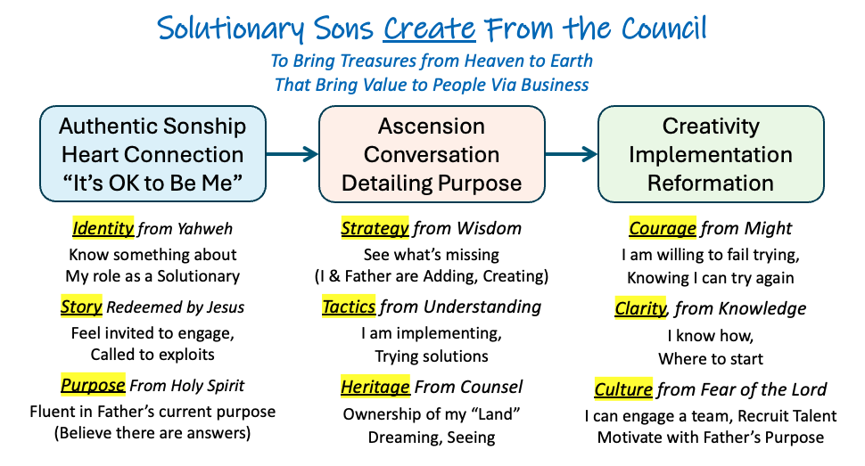 Don’t ask for solutions on a plate; Ask what you can do with Him. This is the fundamental shift from servant to son. Servants wait for instructions. Sons ask about purpose, have the conversations in the Council, and then co-labor with vision. They bring that purpose to earth.