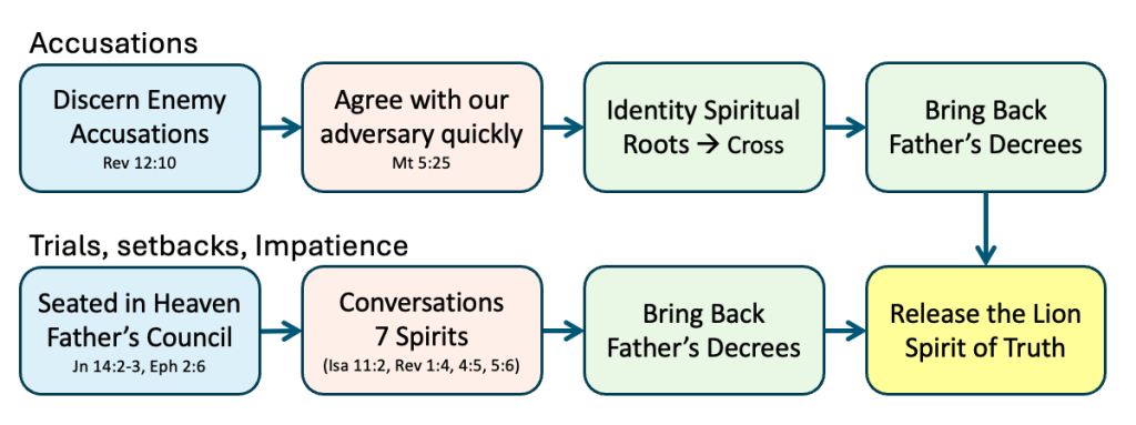 Yes, But How? Sons ascend to the Courts and Council and listen. If accusations show up, we’re in the Courts of Heaven. If it’s the normal trials and setbacks of life, we’re in the Council. Either way, Father has a decree (something to say) for every circumstance. Rom 8:31 — If God is for us, who can be against us?